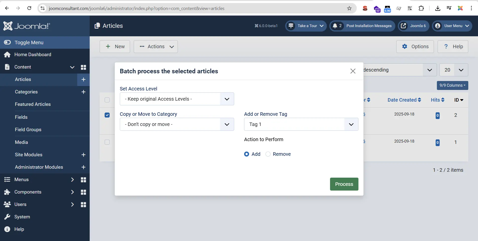 Joomla 6.0 Batch Tag Feature