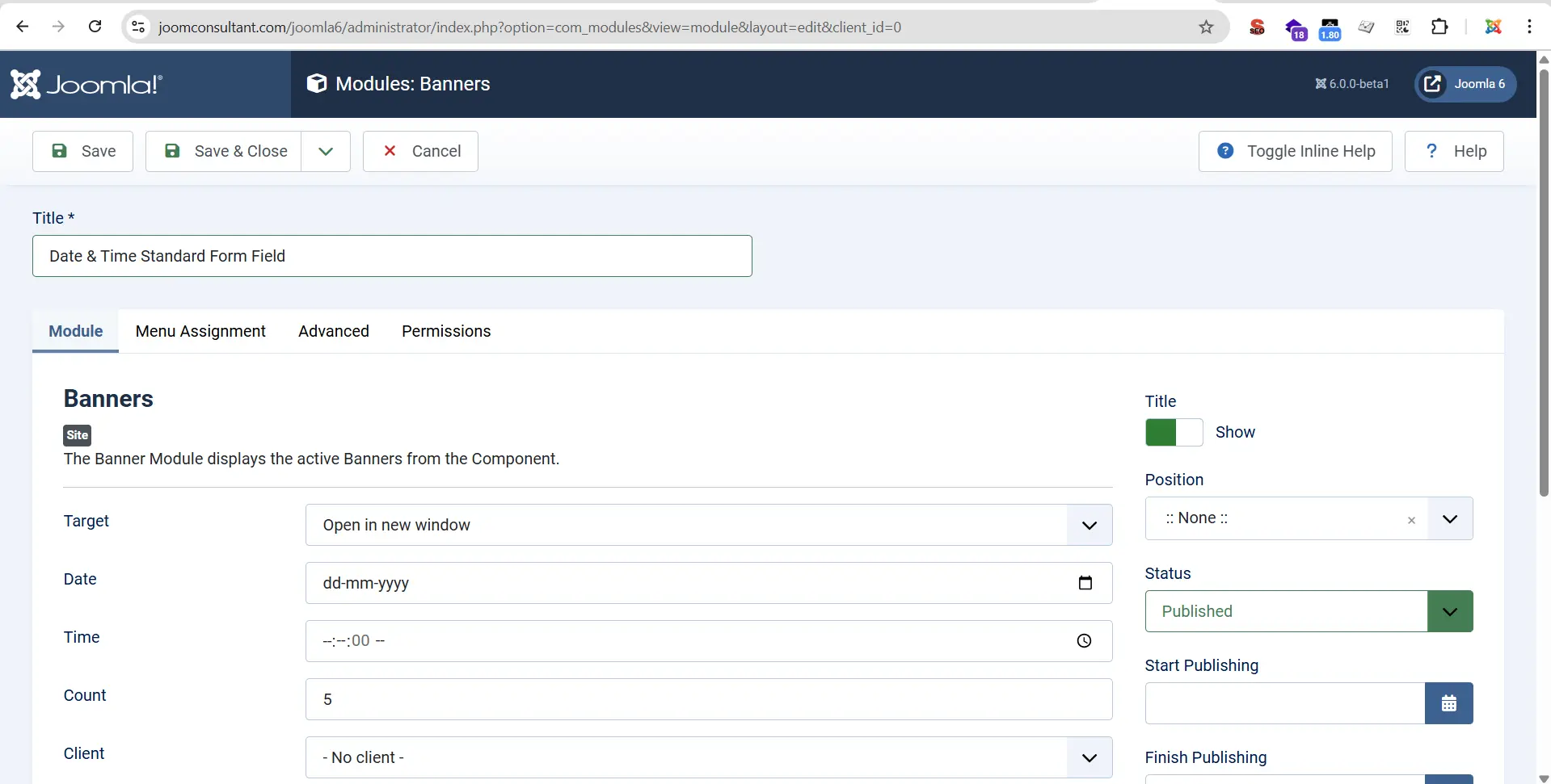 Joomla 6.0 Date & Time Standard Form Fields