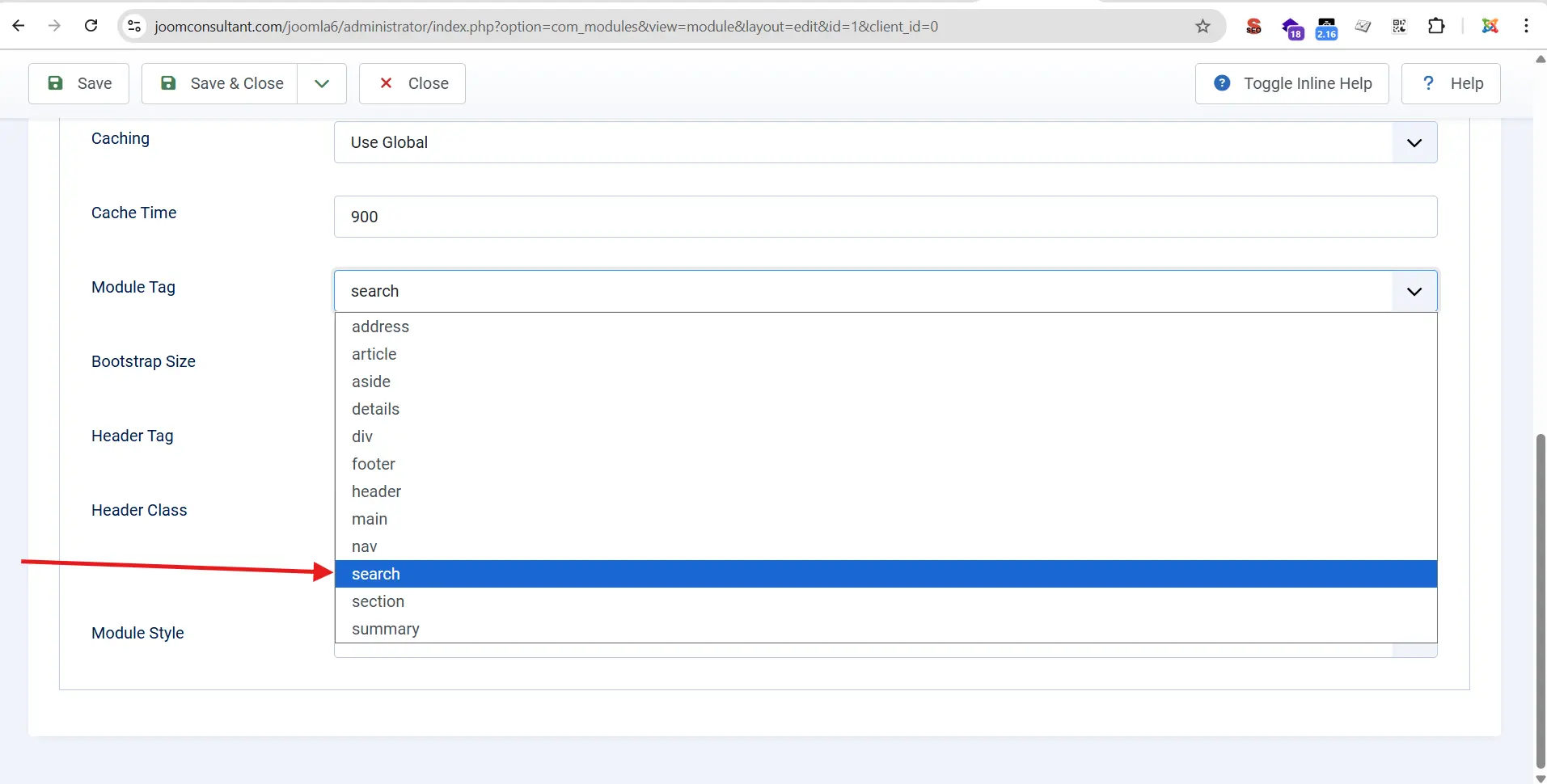 This means you can choose to load the module’s content inside a tag.