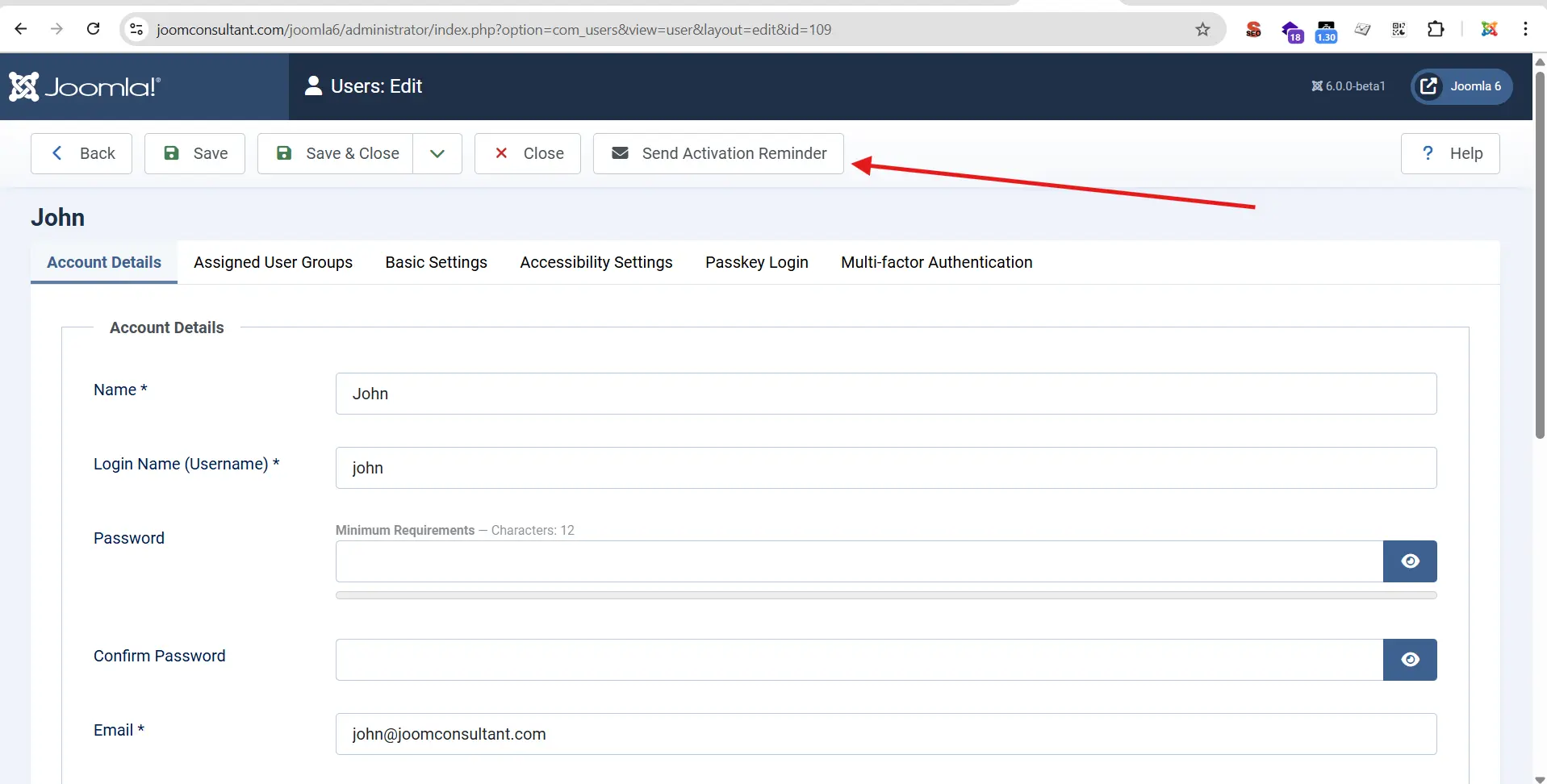 Joomla 6 adds a Send Activation Reminder button in the User Edit form. With one click, admins can email users who registered but never logged in—no custom coding needed. Emails use the standard Joomla template and can be customized.