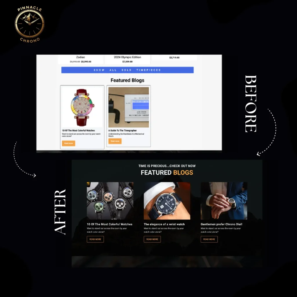 - Created custom modules including Featured Timepieces, Sold Timepieces, Featured Blogs, and FAQ