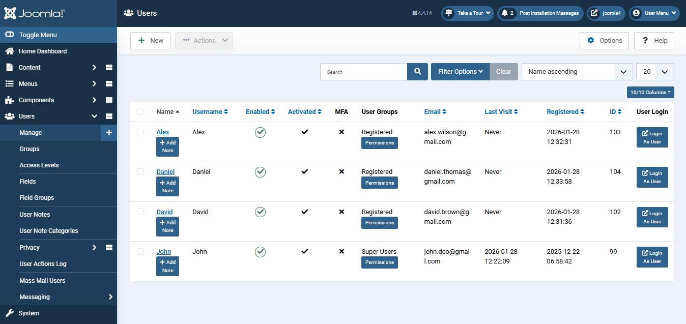 This plugin adds a special Login as User button directly inside the Joomla Administrator users list. With just one click, administrators can log in to the website frontend as any selected user.