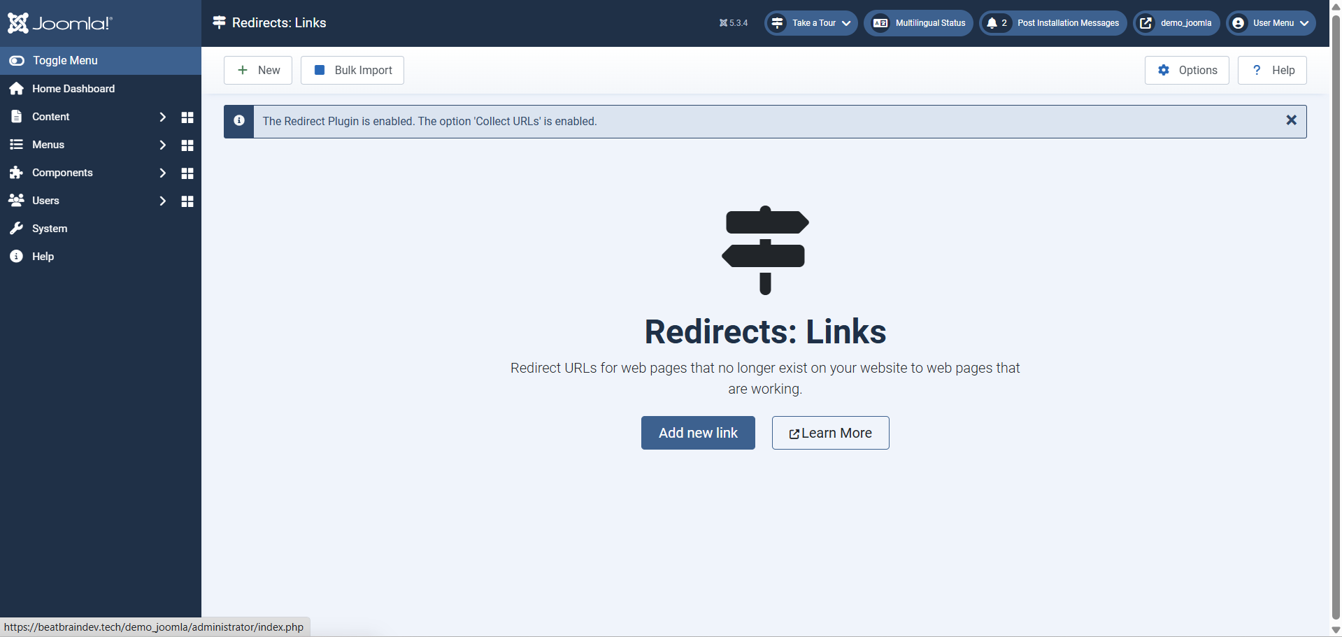 If a visitor or search engine clicks a link that no longer exists, Joomla can automatically send them to a working page.