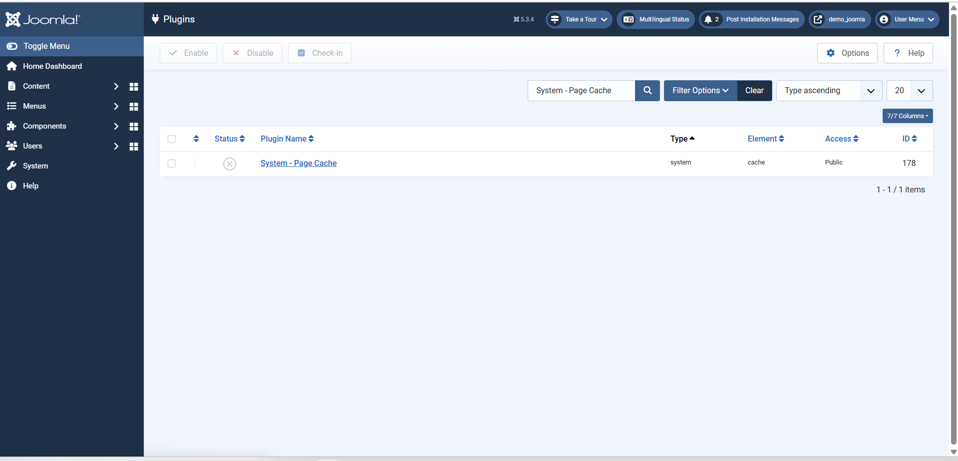 - Enable the Page Cache plugin: